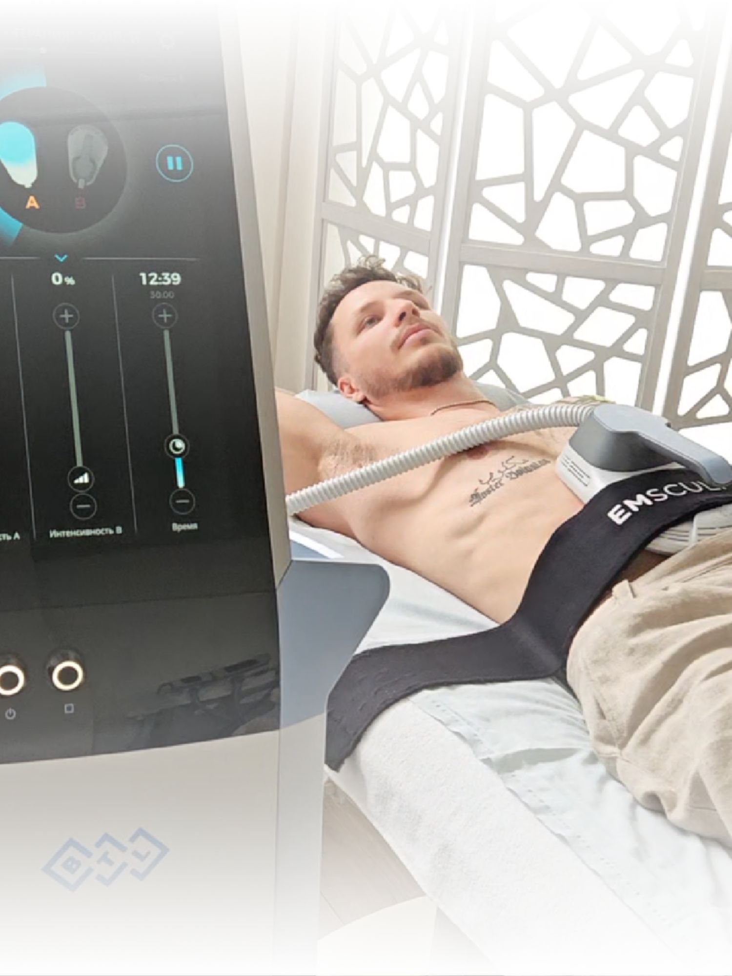 Die EMSCULPT BODYFORMING - Technologie nutzt hochintensive elektromagnetische Impulse, die gezielt in die Muskulatur wirken. Dadurch werden supramaximale Kontraktionen ausgelöst, die mit normalem Training nicht erreichbar sind und so einen effektiven Muskelaufbau ermöglichen.